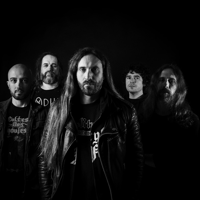 The title track opens the fifth album rather softly, with a moody guitar intro that slowly swells as a voice solemnly ponders over the lamentable state of the world. These clean spoken word vocals are a bit of a curveball, since usually the vocalist delivers grunts from the deepest abyss or anguished screams full of desperation. These seemingly restrained reflections do not last however, as a few minutes later he can no longer hold back the darkness as Jonathan Théry‘s singing descends into utter despair. At this moment the doomed riffs kick in as well in all their monolithic grandeur.