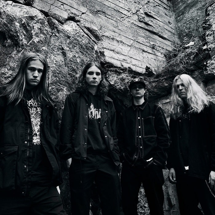 The mid-tempo sections are bolstered by heavily armored, rolling drums and double bass. In terms of songwriting the Finnish squad eschews complexity, though undeniably there are plenty of moments where the drums deliver a brutal slab. Cryptic Hatred takes a bold adaptation of the U.S. brutal death metal. The riffing enhances the rotten feature of the music. ‘Full of Hate’ is a mid-paced track infused with uncompromising barbarity, but mid-way through the track the drums unleash powerful blast beats. The Finnish quartet isn’t shy to deliver some solid, catchy and groovy riffs. However, they do it with style. The guitars even go into a slower mode to add gruesome atmosphere. The instrumentation is cohesive and comes very well together. Especially the grooves are very precise, capturing the spirit of the 90s raw death metal.