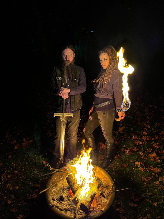 ‘Weaver Deceiver’ harks back to the dungeon synth roots the duo had in their more ambient projects. It’s a short minimalistic piece that roars subdued, but menacingly, as if waiting to strike. Stirring the primordial doom soup again with the slowly cooking ‘Potion’, the dynamic duo keeps alternating between doom and instrumental interludes like on the Vangelis-esque ‘Invoking the Dragon’ which segues effortlessly into ‘Warlock’. The riffs and drumming here sound so blunt and bludgeoning it feels as if you’re being pummeled to death by a neanderthal Pict, holding a gnawed off thigh bone as a club.