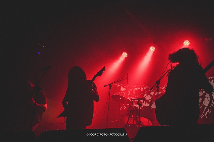 The slow-crushing segments are heavy with more focus on the blistering drums is something Fossilization has skillfully mastered in the previous release. From the devastating drums ripping through the fast-paced tempos to the riff-laden tremolos, the Brazilian duo has conjured up dexterous craftsmanship. The offering of the sheer dark quality of tracks like ‘Oracle of Reversion’ the riffing perfectly wields an oppressive atmosphere, and the inhuman vocals of bassist and guitarist V are loaded with anguish. The drums are fast and ushering in subtle layers of ungodly reverberation and execution in fierce double bass. The tempo of songs varies from straightforward blast beats to unnerving slow doom moments that are laden with subtle, somber undertones.