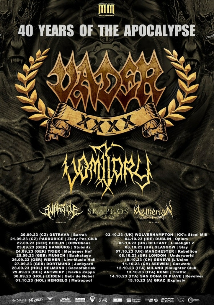 “It is our uttermost pleasure to announce we’ll be joining across Europe to celebrate the 40th anniversary of the mighty Vader, this upcoming fall. Vader has not only been one of our all time favourites, but also, has inspired us in many ways throughout the career of Vomitory. We look forward to seeing all of you the then and celebrate the release of our new album together!“