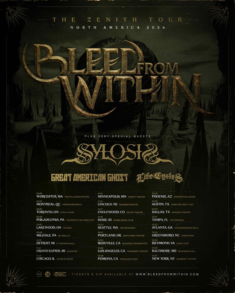 SYLOSIS will also be touring North America across April and May 2026 with Bleed From Within, Great American Ghost & Life Cycles. Full dates are here: