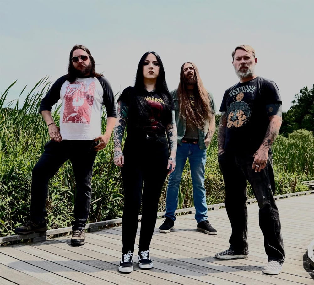 During this period, RADIAN’s lineup coalesced with renewed focus and intent, featuring vocalist Corey Staley, drummer Derek Vaive, and bassist Carly Allman, alongside Burns. What followed was not simply new material, but a reframing of purpose. The result is Subterfuge, a concept-driven album that channels a recasting of sludge and doom into a tale of resistance, survival, and cultural preservation.
