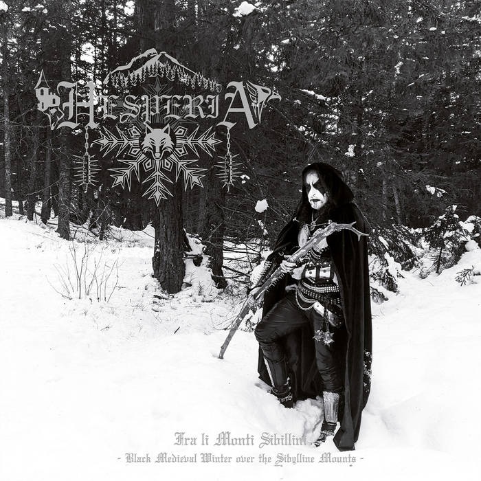 The acoustic guitar segments are utilized brilliantly with spoken verses and tremolo riffs, Hesperus evokes the classic relics of early Norwegian black metal such as Satyricon and Immortal. “Fra Li Monti Sibillini” lends a musical journey to fans of the genre. The enchanting trademark of Italic black metal conveys a medieval atmosphere through the cold blistering riffs; the fourteen tracks are grim and overwhelmingly captivating. Listening to “Fra Li Monti Sibillini” makes you envision the majestic peaks of icy mountains, pine trees, and myriad forest scenes.