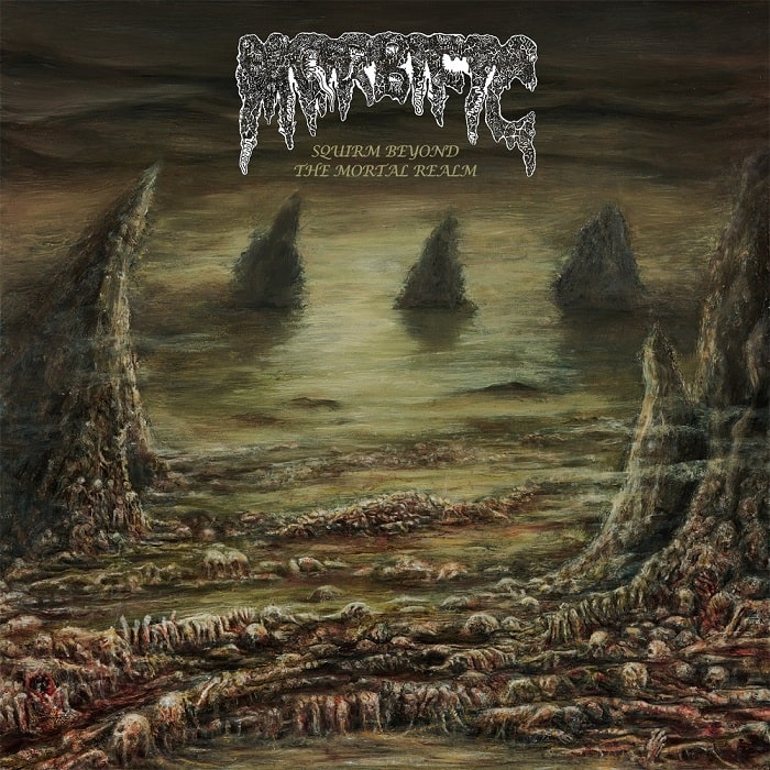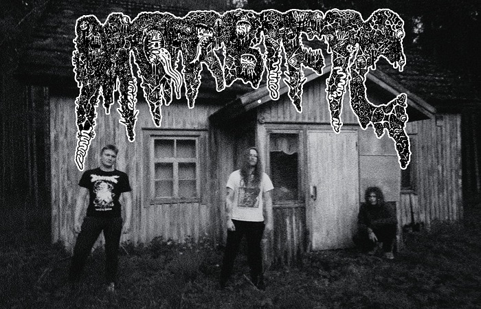 There is a raw and distinctive style that demonstrates how bassist/vocalist Jusa Janhonen, guitarist Olli Väkeväinen, and drummer Onni Väkeväinen have grabbed the raw tonality of the demo recordings. The musicianship is classy and primitive. The title track ‘Squirm Beyond the Mortal Realm’ starts off in the old-fashioned whirring tremolos with the right amount of grimy riffs and fast pounding drums. The tempos are often fast and repeated with heavy guitar parts, but Morbific delivers a filthy Finnish sound. In such a fundamental way the sound remains fully adhered to its old-school trait. The riffs on the album are excellent, yet it also shows the difference between Morbific and the other Finnish underground bands.