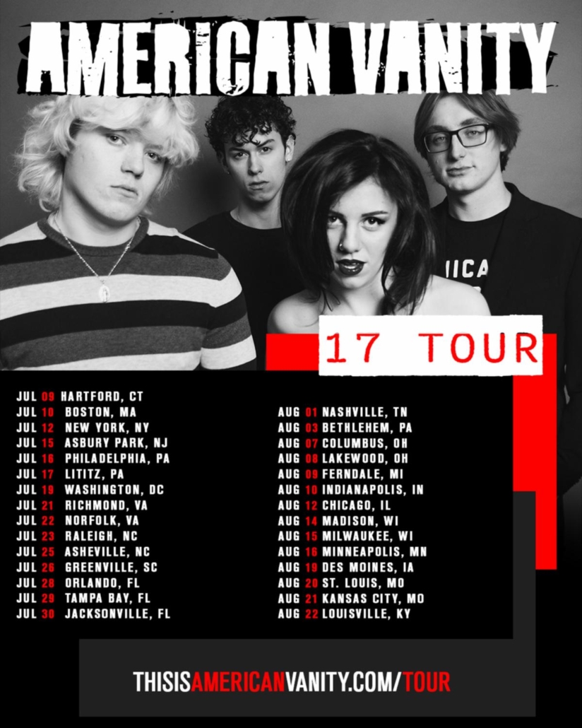 17, American Vanity’s debut record, is a cathartic, high-impact body of work that pairs emotionally charged lyricism with sharp, modern alternative rock production by Matt Squire. Across the record’s 10 tracks, the band navigates the fragile space between connection and self-preservation, unpacking the quiet pressures that society places on us. Each song is a different form of catharsis, capturing the volatility of self awareness in real time. From the high energy, hooky “Lifeline” to the brooding vulnerability of “Kill To Feel,” 17 is a cohesive yet emotionally varied debut that details the journey of reclaiming your identity and finding yourself again.