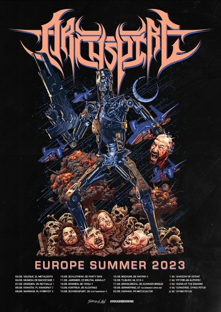 ARCHSPIRE recently announced new European tour dates for the Summer of 2023. The ‘Europe Summer’ tour includes festival appearances such as Party.San, Brutal Assault, Alcatraz & Summer Breeze! A full list of confirmed dates can be found below.