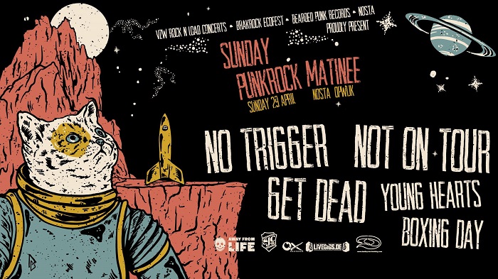 On this years Sunday Punkrock Matinee 5 bands rocked all out without limitations. No Trigger (US) - Not On Tour (ISR) - Get Dead (US) - Young Hearts (BE) - Boxing Day (BE) showed us what they've got and you can enjoy it with us in this photo coverage of Nosta's awesome event!