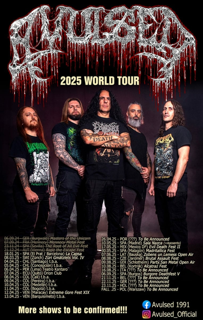Formed in 1991 by Dave Rotten, AVULSED has remained a pillar of the death metal scene for over 30 years. Following a major lineup change, Dave Rotten and drummer Santiago Arroyo “GoG” continue to lead the band alongside new members Alejandro Lobo (guitar), Alex Nihil (bass), and Victor Dws (guitar). This new lineup has breathed fresh life into the band’s songwriting while staying true to AVULSED’s signature uncompromising brutality.