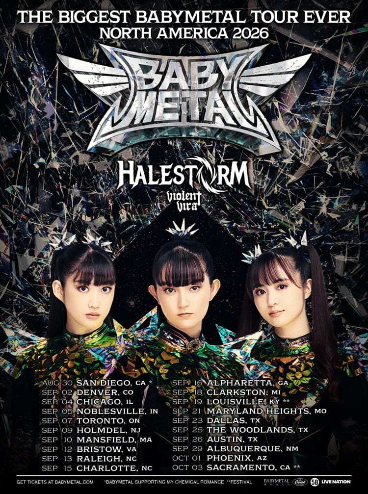 Following their annual Fox Day celebration, BABYMETAL also announced their 2026 World Tour spanning North America and Latin America. Supporting them on their North American tour dates will be Halestorm and Violent Vira. Tickets for dates in the US and Canada are available now and can be purchased at the LINK HERE.