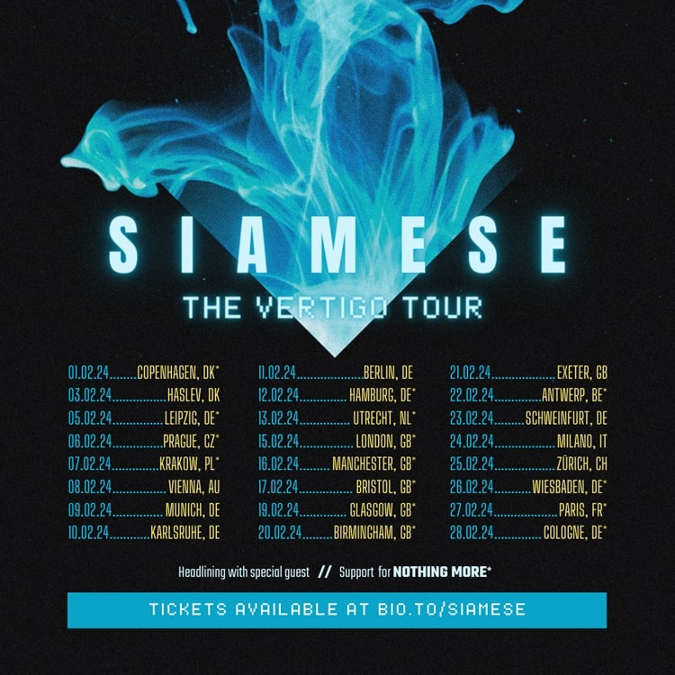 In February SIAMESE will be supporting Nothing More as well as performing some UK/EU headline shows. See all dates below.