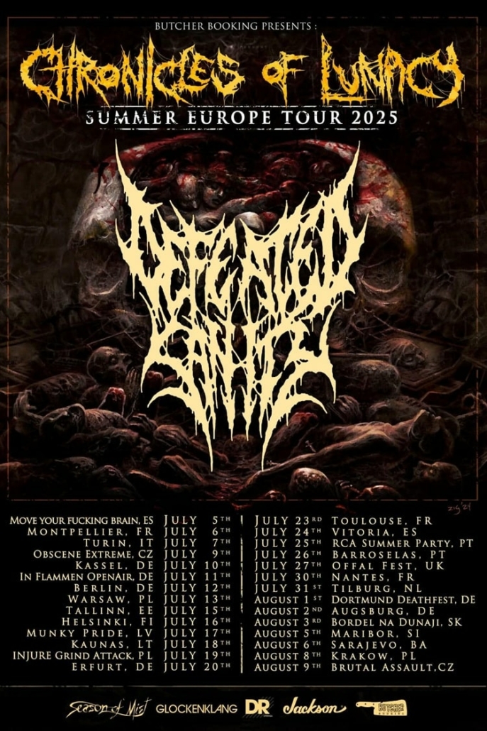 Season of Mist is proud to announce that brutal death metal pioneers DEFEATED SANITY will embark on their 2025 European Tour this summer, bringing their critically acclaimed album Chronicles of Lunacy to stages across the continent!