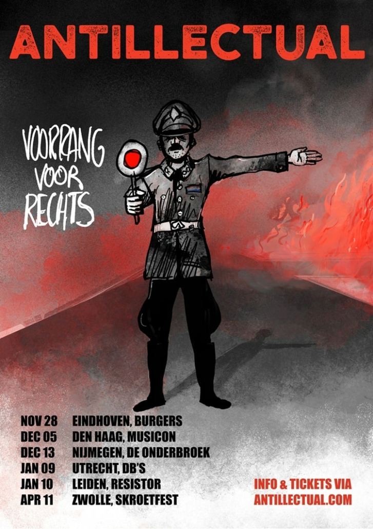 Antillectual presents their first ever song in Dutch! Voorrang Voor Rechts (literal translation “priority to the right”) is a fast, thrashy song dealing with the current worldwide shift to the right that is also taking place in the Netherlands. Find the digital single and music video here: