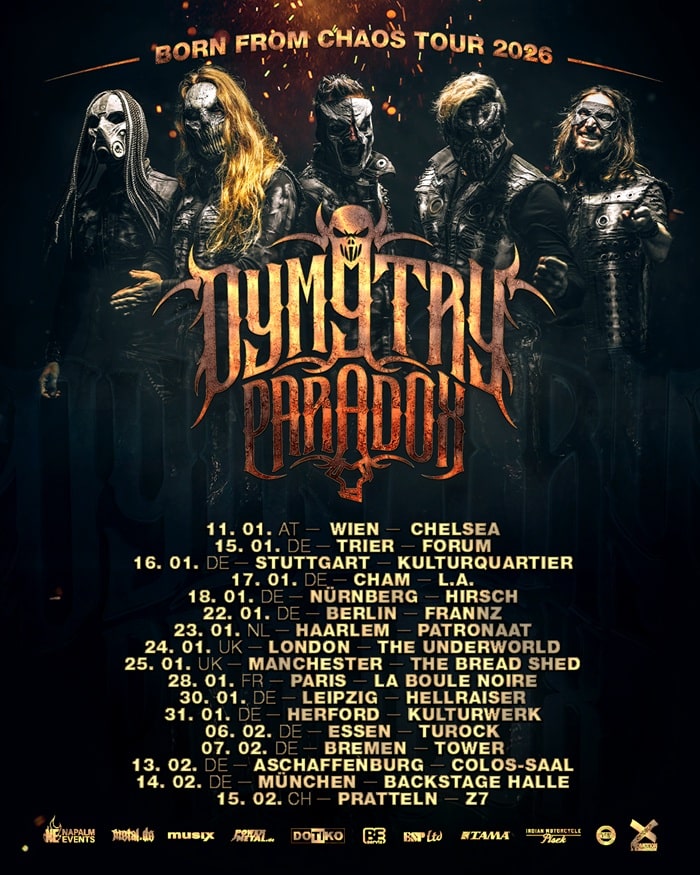 After igniting stages across Europe with Pantera, Lordi, Mushroomhead, and Hämatom, and following explosive appearances at Summer Breeze, Rock The Lakes, and Into the Grave, DYMYTRY PARADOX is preparing to return — headlining their most intense tour to date: BORN FROM CHAOS.