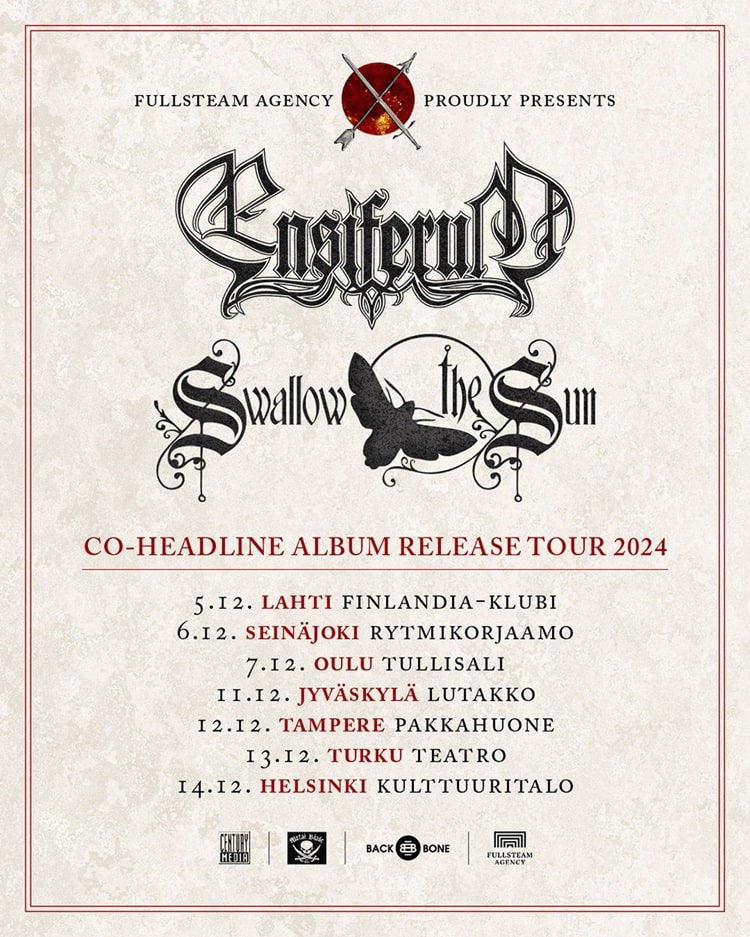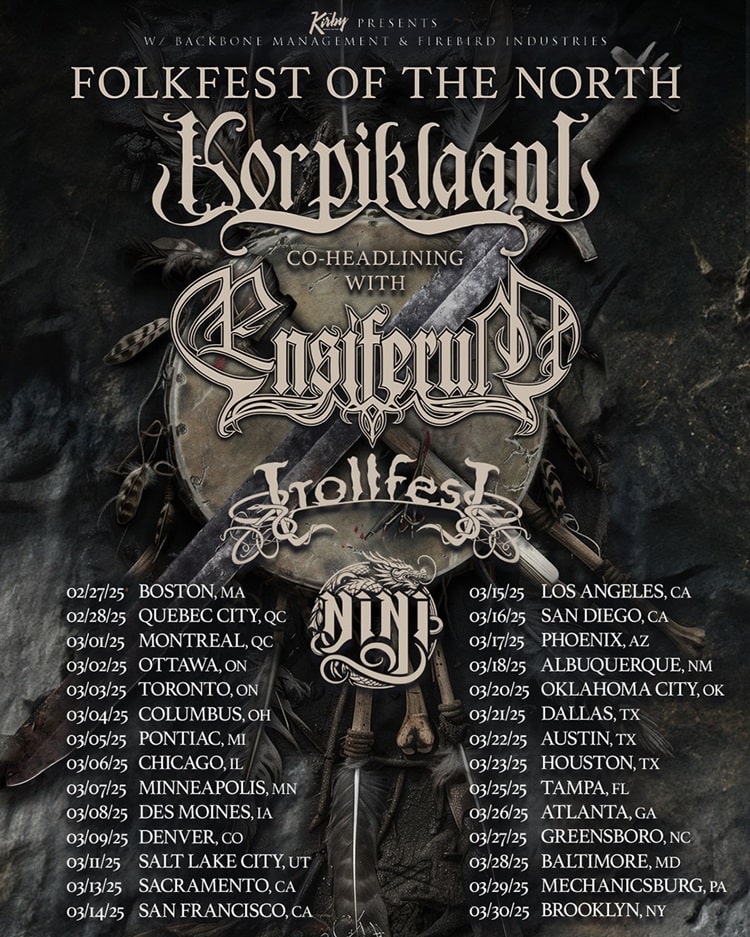 ENSIFERUM will join Swallow The Sun for a week-long co-headlining album release tour through Finland in December followed by a month-long run of dates on Paganfest 2025 alongside Alestorm, Týr, Heidevolk, and Elvenking. From there, the band will head to North America with their comrades in Korpiklaani for the Folkfest Of The North co-headlining tour. The journey runs from February 27th in Boston, Massachusetts through March 30th in Brooklyn, New York. Additional support will be provided by Trollfest and NiNi.Tickets for all shows are on sale now. See all confirmed dates below.