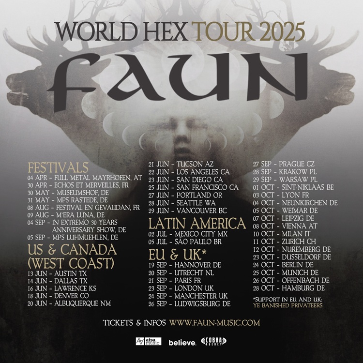 Just like the album “PAGAN”, which entered the German album charts at number 3, ‘HEX’ is also released on the band’s own label “Pagan Folk Records” with the help of the distributor “Believe”. Since 2023, however, FAUN have been signed to the management AISA (e.g. WARDRUNA, ENSLAVED) and booked by COBRA AGENCY (e.g. SLIPKNOT, SABATON), which has already enabled FAUN to achieve numerous highlights in their career since 2023, e.g. major tours in the USA.