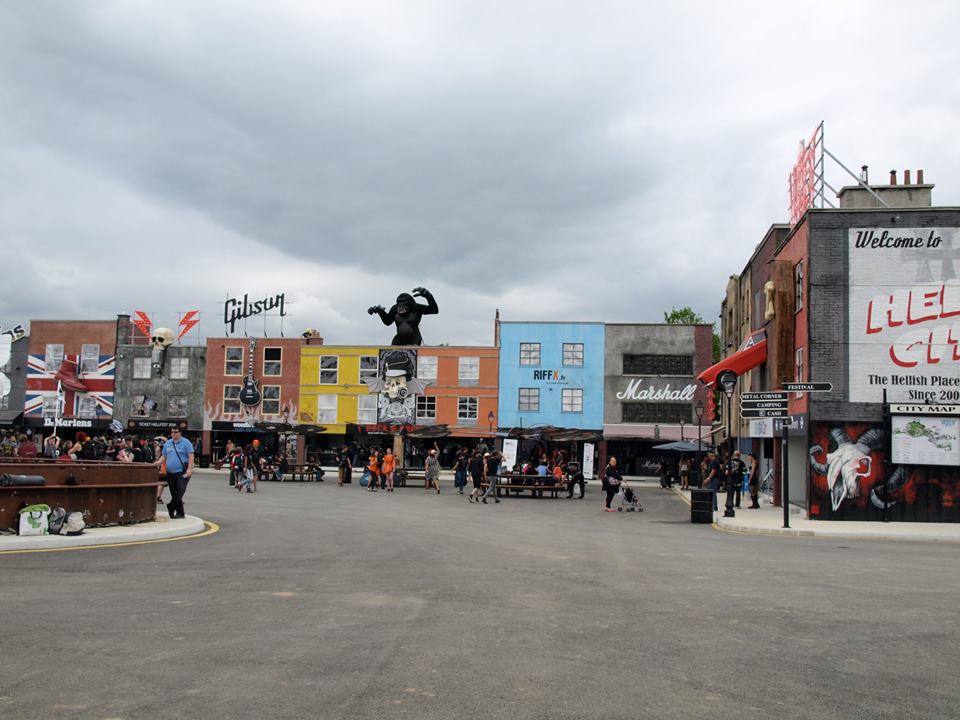 When you follow the road towards the festival site, you will arrive at the Hell City Square, which you will recognize as it is the first place you see when you pass the festival entrance. Here you can find cool building-like artwork inspired by Camden Street in London, toilets, an ATM, some of Hellfest’s partners, the info-point, the Extreme market and probably early-bird tickets for the next edition of Hellfest. At the Extreme Market you can find labels and distro’s that sell the merch of your favorite bands.