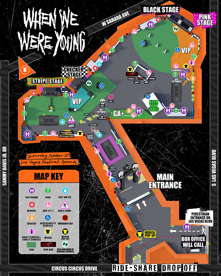 The festival takes place at the Las Vegas Festival Grounds, at 311 W Sahara Avenue, Las Vegas (Nevada) 89101. The festival grounds are located at walking distance from The Strip, and are only a few miles away from the airport (Harry Reid International Airport / LAS).