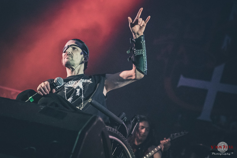 On the other hand then, there is Taake. They were this year’s best representation of the trve kvlt Norwegian black metal. Hoest and his companions are holding the banner of old school second wave of black metal high, and he’s a rather legendary character of the scene that is impressive to see marching around the stage with a certain level of ferocity. Added to that the huge tattered Norwegian flag he has draped around his shoulders as a cape that flaps and twirls around him while he’s frantically moving and screaming like a demon straight from hell, and you know you found the perfect show to fulfill your need for pure and unadulterated black metal.