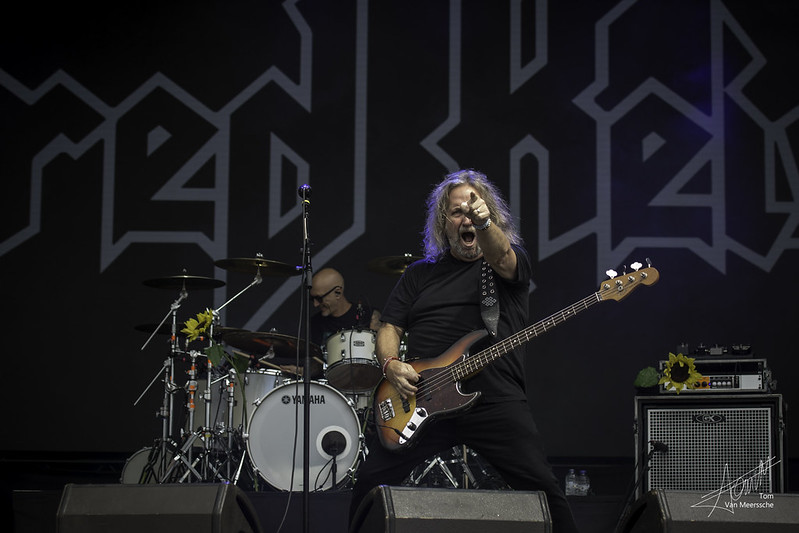 When we showed up at the La Morgue stage, we didn’t necessarily expect such a positive and fun-loving atmosphere with the US thrashers of Evildead. These guys have been around since the eighties, but have been a bit neglected or underappreciated from time to time in our opinion. Since they got back together with a somewhat new line-up that blends different iterations of the band into a whole new beast, they’ve been on a roll trying to make people remember and acknowledge them by playing shows all over the place and releasing an excellent album a couple of years ago with ‘United States of Anarchy‘. They played a nice selection of tracks from that latest album, mixed with some of their classics, making it a great hour to spend among a truly excited crowd and showing that putting this band on the more club-like setting of this stage was a master move by the organisation. Let’s go!