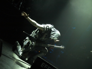 Iedereen keek duidelijk al uit naar dé headliner van het weekend: Behemoth! Het duurde wat langer voor de show begon, maar dan kwam deze Poolse blackened deathmetalformatie het podium op met een geweldige attitude, zoals we wel van ze gewend zijn. Ondanks wat technische problemen tijdens de soundcheck en in het begin van de show, was het een zeer overtuigende set die begonnen werd met Blow Your Trumpets Gabriel. Hiermee werd de toon direct gezet en het publiek was, ondanks de technische problemen, razend enthousiast. Ik zag Behemoth al een paar keer live, maar dit was de eerste keer dat het in een zaal (en niet in de vlakke zon) was, waardoor de show extra goed uitkwam voor mij. Een grimmige en duistere sfeer sleept heel de zaal onmiddelijk mee, en de lichtshow was in een donkere zaal ook zeker de moeite. Jammer genoeg was er echter geen vuurshow, en was er ook niet echt iets gedaan met het podium,… natuurlijk zijn er de indrukwekkende kostuums, maar verdere aankleding van deze headline-show bleef uit en we herkennen dezelfde inkleding als de paar keer dat we Behemoth de afgelopen jaren al zagen. Met O Father, O Satan, O Sun! werd de show toch nog op een goede manier afgesloten.