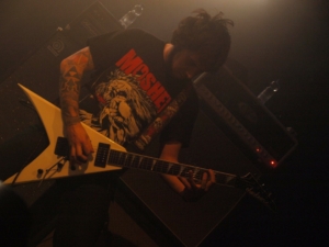 Hierna is het de beurt aan Onslaught. Het optreden was zalig zwaar, zoals verwacht. Met strakke riffs en zeer goede zang raasden deze heren over het podium. Ze genoten duidelijk zelf ook van het optreden en dat maakte het extra goed. Sy Keeler is ook een feest van een frontman, waardoor het grootste deel van het publiek direct werd meegesleurd in een sterke en thrashende sfeer. Wij kijken al uit naar de dvd Live At The Slaughterhouse die uitkomt op 26th February 2016!