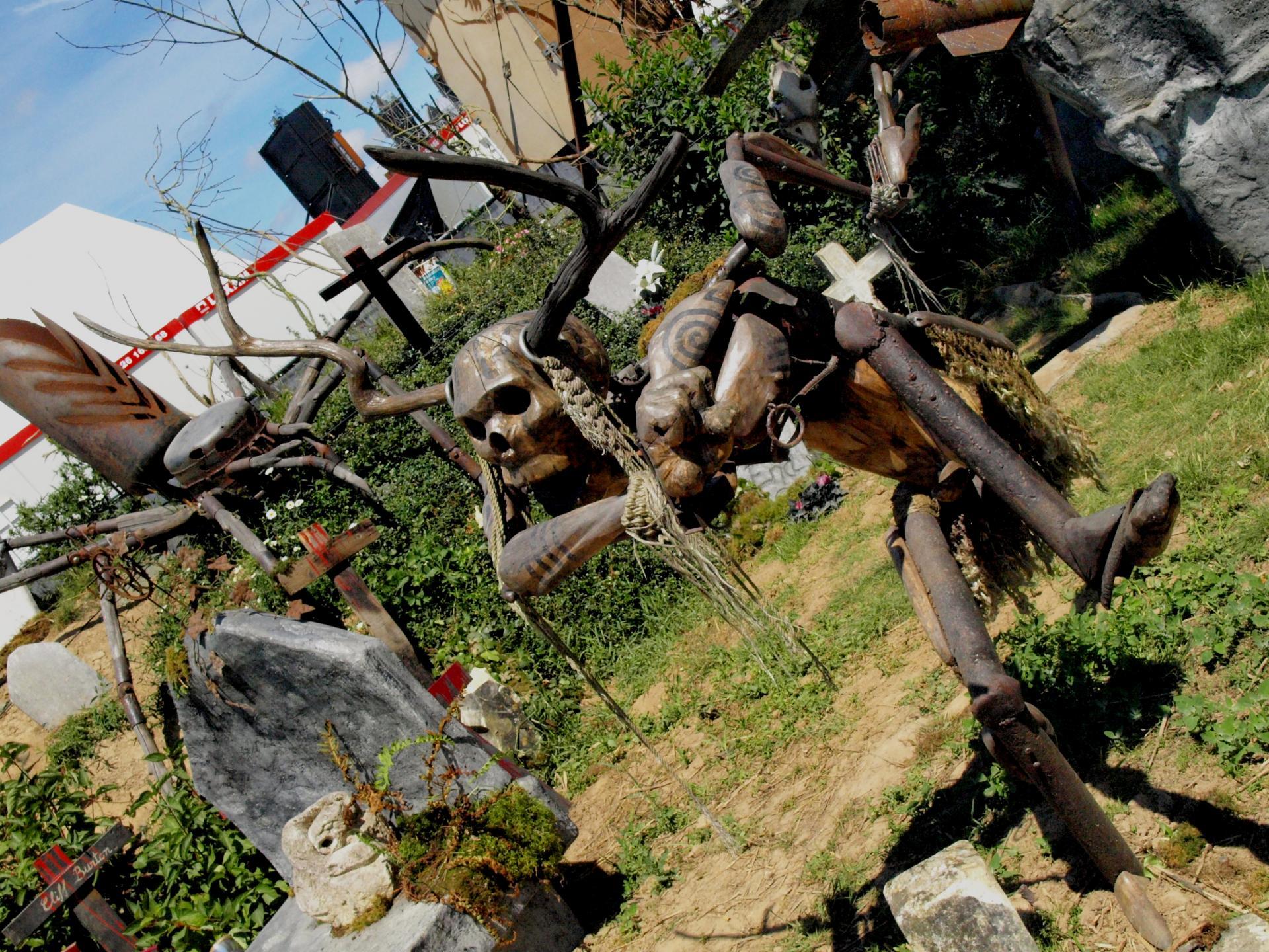 De – vaak metalen – kunstwerken waren echt geweldig uitgewerkt. Ook kun je op hellfest zitten/chillen in een bos, wat door de inkleding en lichtjes een hele leuke sfeer heeft en overdag de nodige verkoeling biedt. Tegenover deze verkoeling staan er de verschillende plaatsen met pyrotechnics die ‘s avonds wat extra warmte kunnen bieden als het afkoelt. De verschillende bars zijn voorzien van vlammenwerpers (soms in verschillende kleuren) en op meerdere plaatsen op het terrein zijn er ook af en toe vuurshows (met mooie dames, niet te vergeten).