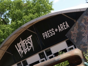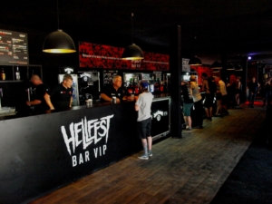 De VIP/PRESS area was goed uitgerust en zag er ook erg goed uit (zie foto’s). Hier kon je ook op een rustige manier naar de optredens kijken op groot scherm als je even wilde uitrusten en er was genoeg drank en ook wat eten te verkrijgen, en er waren geen rijen voor de wc’s! Huzzah! Omdat het artwork er zo mooi was, was het eigenlijk wel jammer dat dit niet zichtbaar was voor alle festivalgangers. Nog een nadeel was wel dat het best groot was en íedereen die op Hellfest werkt daar blijkbaar mag chillen. Dat maakt het soms wat moeilijk om tot rust te komen of even rustig onze informatie en foto’s te checken. De perstent was echter goed uitgerust met een aantal laptops die iedereen mocht gebruiken. Wel was het er midden op de dag niet uit te houden van de warmte. Aan de kant van de laptops was ook een ruimte voor de persconferenties, waarvan we de eerste (Motörhead) door de slechte communicatie al deze eerste dag hadden gemist. Bummer. Aan de andere kant van de perstent waren er interview-hokjes.
