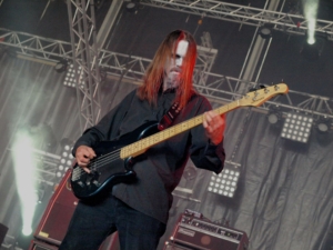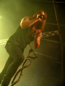 Hierna pikken we een stuk van Bloodbath mee. Ondanks het feit dat ze tegelijk speelden met Lamb Of God was er toch nog veel volk komen opdagen bij The Altar. Het geluid was weer niet schitterend maar als grote fan van deze Zweedse deathmetal band uit Engeland (zo kondigde Nick Holmes de band aan) was ik zeer tevreden om knallers als So You Die, Cancer of the Soul en Like Fire live te aanschouwen. Jammer dat er geen pyrotechnics waren want deze zouden zeker niet misstaan bij een optreden als dit. Als kers op de rottende taart moest en zou het franse publiek Eaten horen en kregen we dit ook als encore. Bloodbath zou echter Bloodbath niet zijn zonder de nodige branie en arrogantie. Zo kreeg onze eigen Ilse bijna een schop tegen haar hoofd van de zanger. Blijkbaar geen fan van de camera’s die mannen. De foto’s kunt u hiernaast zien.