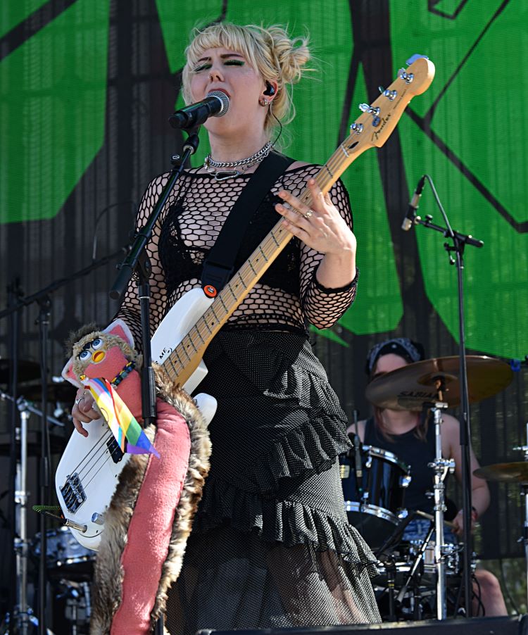 The songs were short, fast, melodic and hard hitting. The band even did a cover of Nirvana’s Territorial Pissings. To introduce the song they got the audience to chant “Piss, Piss, Piss” over and over, which they were happy to do with much gusto. We were introduced to their Furby mascot, who, according to the band, wrote their song Road Kill because it “loves driving cars and hates misogynists”.