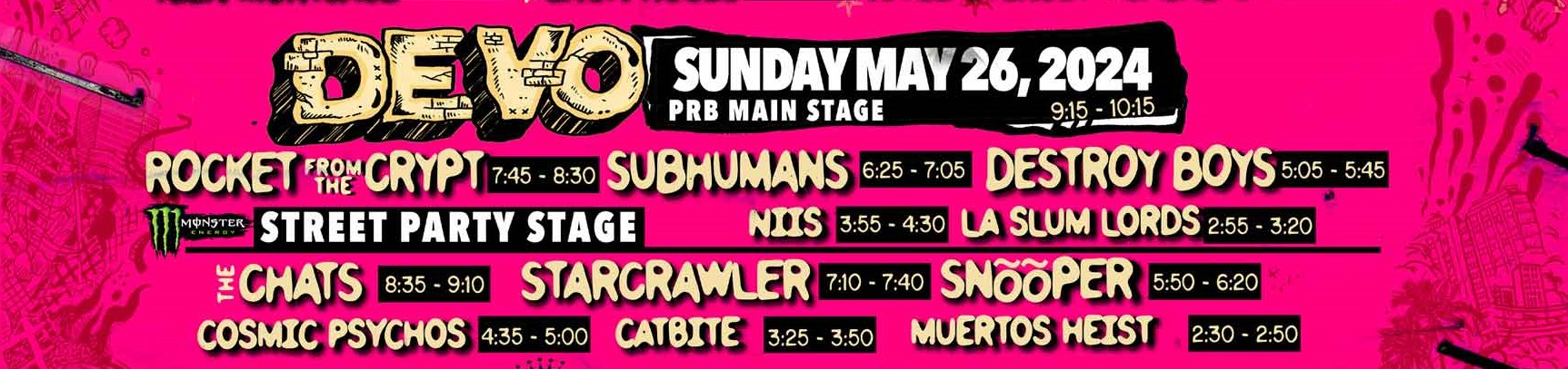 This was one of the bands I really wanted to see, and I was not disappointed. I was surprised that the Street Party Stage was not absolutely packed for this, people didn’t know what they were missing. Everything on stage was pink, the amps and cabinets had been sprayed pink, guitars were pink and even the microphone stands.