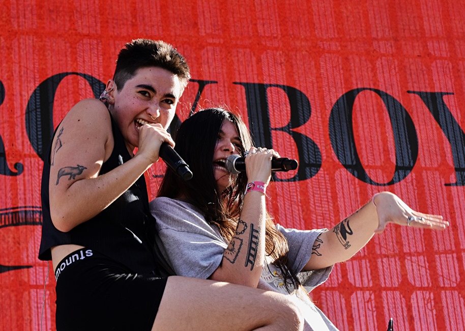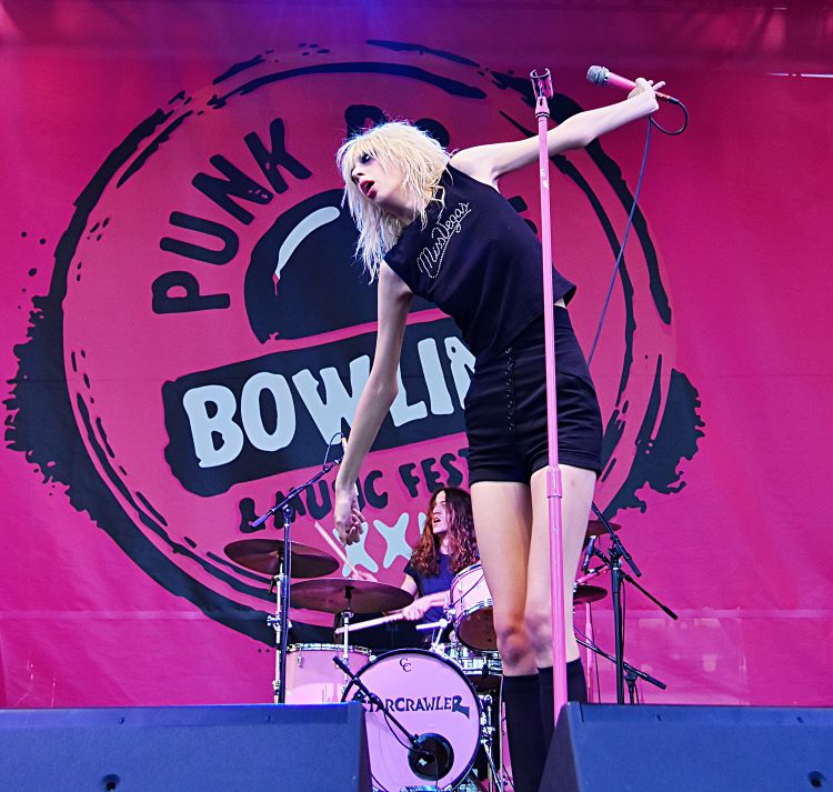 The wonderfully named Destroy Boys from Sacramento are up next. They lacked the punch of previous mainstagers Niis, but were entertaining enough. The band was fronted by Alexia Roditis who seemed a little hesitant and nervous at first, but as the set went on the better she and the band got. In fact, she also climbed the scaffolding on the stage, which added to the spectacle.