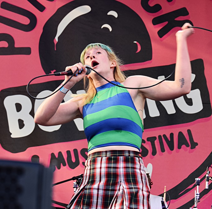 They really took off when guitarist Violet Mayugba grabbed a microphone and joined in, co fronting the band. She was quite a sight as she stomped around the stage, her hair flowing everywhere. Their brand of loud, melodic, punk rock with a touch of hardcore is appealing to the crowd, although their plea for an “all girl and non-binary mosh pit” falls on mostly deaf ears. The band also have the best song title of the day in I Threw Glass At My Friend’s Eyes Now I’m On Probation, which is in fact a song about being groomed.