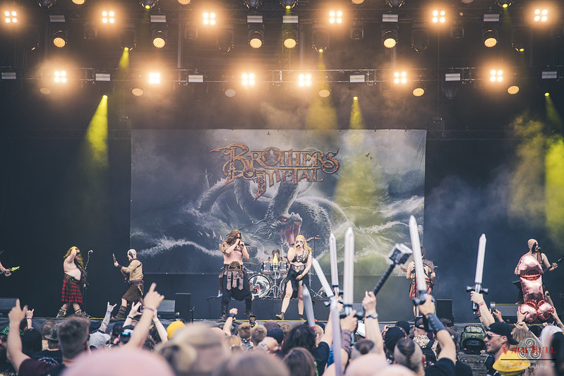 Time for something way less serious now, and the very last proper party of the weekend! On the second outdoor stage, the Swedish power metal collective Brothers of Metal took over as the last band there, and man, how much fun was that! With their Norse and Viking themed songs and performance, they really took us somewhere else for a while and the crowd was prepared with inflatable swords, axes and more to wave in the air. The band danced around, the crowd danced around, drinking horns were raised, beer was being smashed,… everything you’d want from a good heavy metal party. Songs like ‘Njord‘, ‘Ride of the Valkyries’, ‘Berserkir‘ and of course ‘Defenders of Valhalla‘ were an absolute riot, and the show was a great palate cleanser for what otherwise had been a relatively serious day.