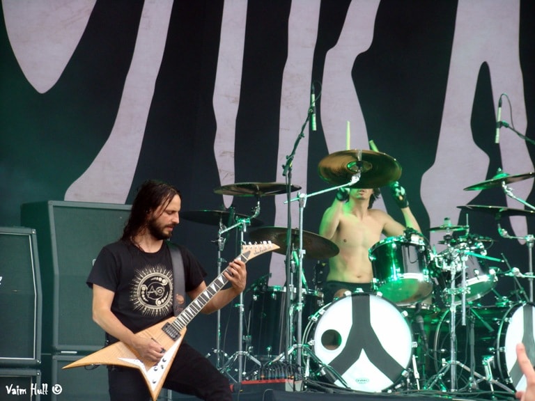We still caught most of the first of 3 sets by Finnish melodic death/doom metal band Swallow The Sun. They focused mainly on the music of the first album of their latest 3 CD release and the sound they got big and well-known for. The guys put down a great gig again bringing some guests on stage here and there. I maybe missed some of their “hits” like for instance Hate, Lead The Way, but still definitely a great gig by a talented band. Even though the fact that they played on the main stage in the blistering sun didn’t really help bring the proper atmosphere for their dark and gloomy sound. If you weren’t up for their not so happy music, during their performance you could go to the smaller Inferno stage to go nuts on the Lebanese Blaakyum. We personally didn’t get to see them, but they’re definitely worth mentioning.