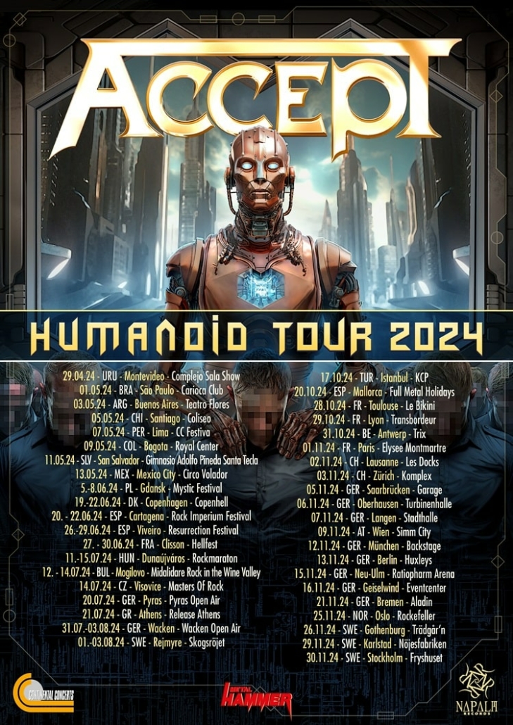 Together with the album announcement, ACCEPT has also revealed a massive European headline tour with more than 20 shows across the continent for autumn 2024! This summer, ACCEPT will also return to some of the world’s most important rock and metal festivals, like Wacken Open Air, Hellfest and more, following their South American spring tour. Make sure to secure your tickets and check out the cover artwork for Humanoid below!