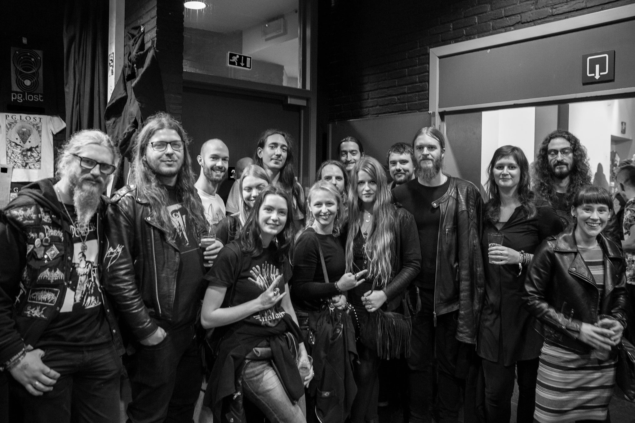 Because people rushed in to hear the last songs of pg.lost the line to get a beer was still long when Alcest already took the stage. The VK concert hall definitely keeps up a sharp tempo. They should have taken a bit more time to prepare since the title track of Alcest‘s latest album Kodama was drowned out mostly in the overly loud drums. Neige‘s fragile voice was lost during this first part of the show, but luckily the sound improved throughout the set. Live it became clear once again how amazing the new album is. Eclosion, Je Suis d’Ailleurs, Oiseaux De Proie are all instantly recognizable and soothing tracks where Neige returned to Alcest‘s older sound. But also for older fans the setlist proved to be well balanced. With Souvenirs d’un Autre Monde, Percées de Lumière and Écailles de Lune we really got both the new and a best of the older material. Neige seemed more relaxed than I have ever seen him performing live and invited the audience to interact and put the hands together during songs. The show of Alcest was concluded with Shelter‘s closing track Délivrance. The voices around me were unanimous that this was one of the best Alcest shows most of us have seen and heard. When we spotted Neige having a talk with the fans at the merchandise stand we could not resist to show our gratitude and take a Grimm group picture.