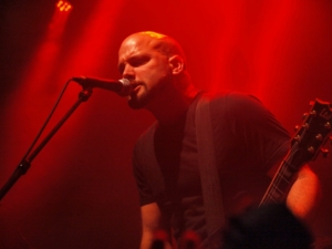 Gelukkig waren we nog op tijd om onze spullen weg te steken in de lockers en dan toch het begin van de set mee te maken van Thurisaz! We volgen deze atmospheric avant garde metalband al een tijdje, en terecht want ze timmeren al 19 jaar goed aan de weg. De set was minder zwaar dan we hadden verwacht, maar daarom niet minder goed! Ondanks enkele technische problemen met het geluid zetten ze in Kortrijk een indrukwekkend optreden neer met veel ambiance in de zaal.