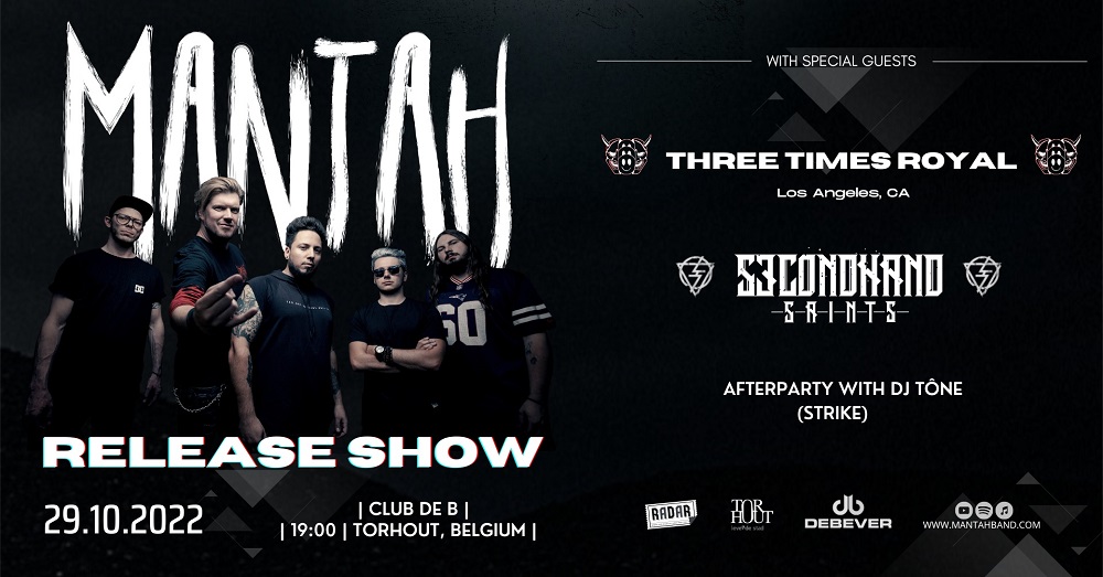 Lead guitarist Bart Vandeportaele quit Spoil Engine 4 years ago because he wanted to combine the band life with the family life. He couldn’t do that with Spoil Engine, because they were getting too big and had too many shows abroad. But since Bart didn’t want to give up his guitar, he started Mantah together with singer Sven Herssens (Fields of Troy), drummer Lothar Ryheul (Fields of Troy), bassist Bert Nauwynck (Diecast Unit) and guitarist Dennis Wyffels (Lethal Injury/Bloodrocuted).