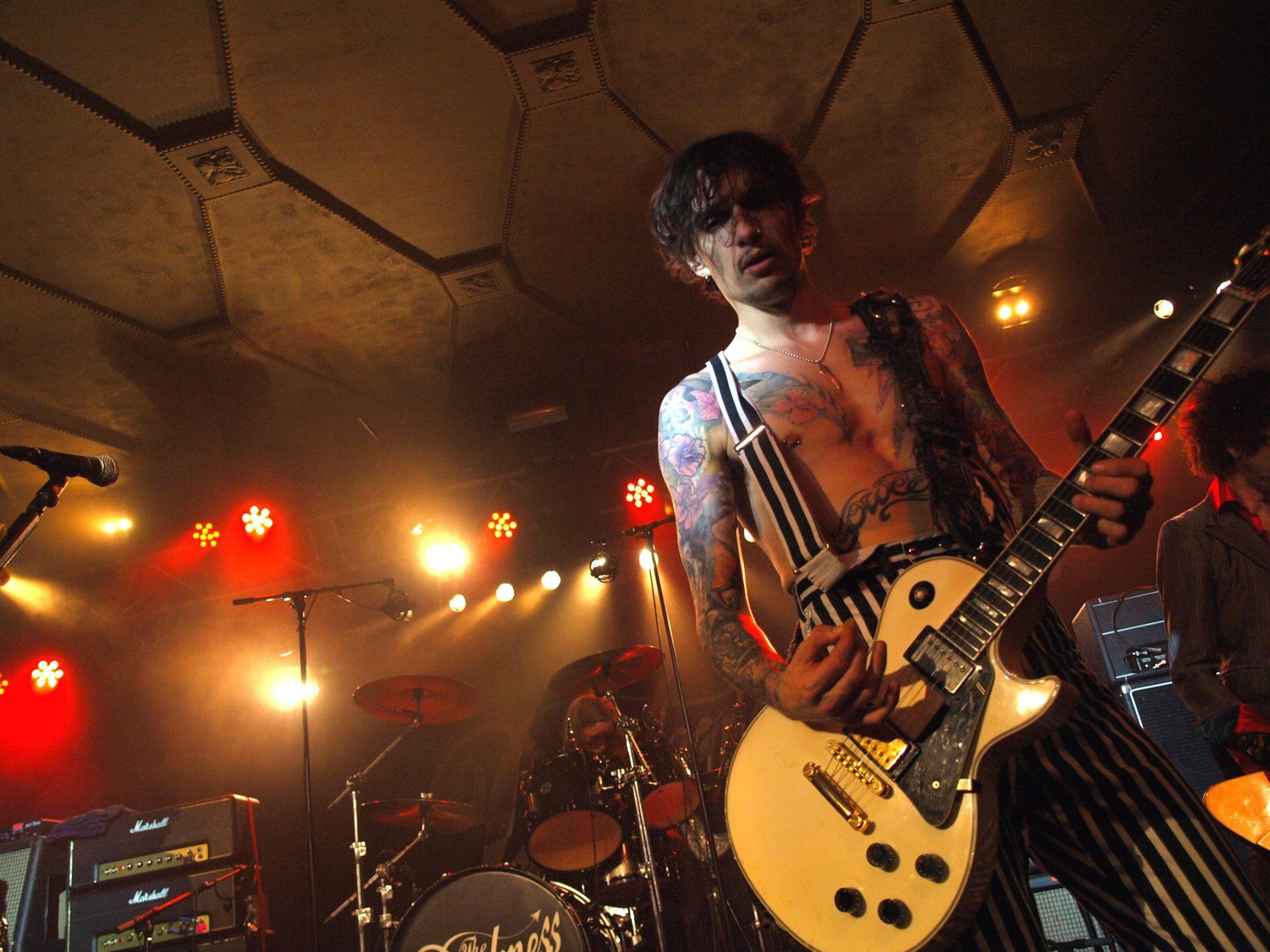 Al bij het 3e nummer (‘Black Shock‘) gaan de kleren uit. Een stomende Hawkins schudt al zijn ledematen heen en weer waardoor het niet echt geweldig lukt van de eerste keer, maar dan kan hij toch verder gaan in bloot bovenlijf met bretellen. We mochten 3 nummers fotograferen, maar hij lijkt toch al ongeduldig te worden en port bij het refrein al met zijn microfoon in de lens van de fotograaf naast mij, alsof de camera zou moeten meezingen. Ik ga alvast verder van het podium af staan, en merk later dat hij een andere fotograaf zijn camera nog heeft afgepakt. Vreemde kuren, die Justin.
