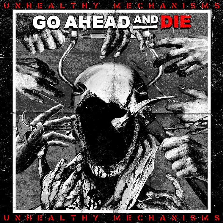 Unhealthy Mechanisms was produced by Igor Amadeus Cavalera while John Aquilino handled the recording in his Platinum Underground Studio steeped in the mystic ambiance of the Superstition Mountains’ foothillsThe mixing and mastering were once again handled by Arthur Rizk (CAVALERA, SOULFLY, TURNSTILE)For the artwork, the band enlisted Santiago Jaramillo of Triple Seis Design to create the unnerving design that fits with the album title. GO AHEAD AND DIE‘s newest record is a testament to declining mental health around the world, and a reminder that we are not alone in our pain. The mind is lost. The fuse is lit. Time to set everything ablaze.
