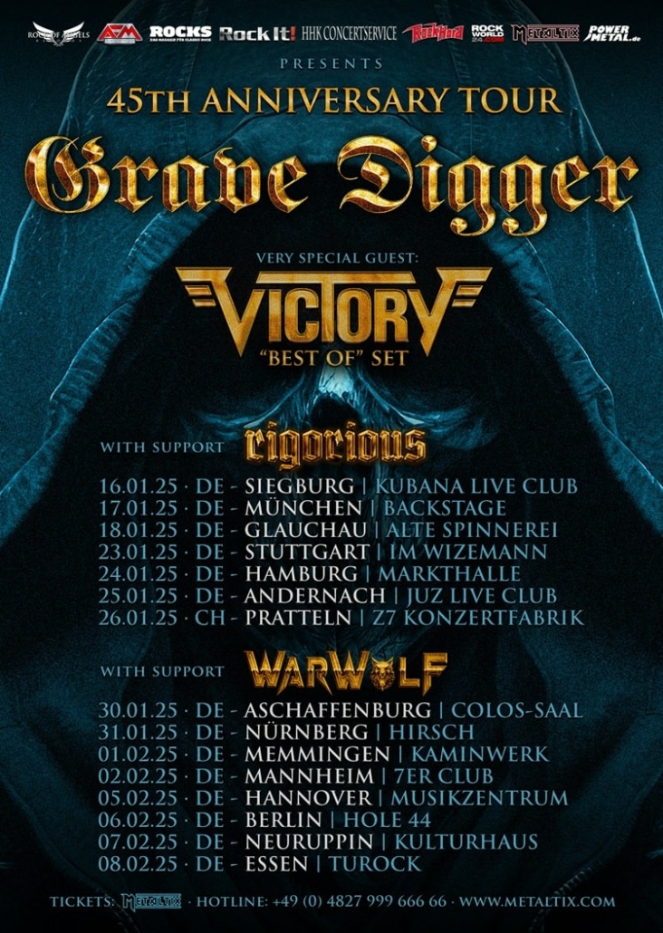 In the year 2025 the German metal institution celebrates its 45th anniversary. Founded in 1980 in Gladbeck/Germany, they moved out to conquer the world. Who would have thought that 45 years later Grave Digger would be one of the most important, consistent and influential metal bands from Germany. With the release of the album “Heavy Metal Breakdown” in 1984, an unprecedented career began that will find its logical continuation with their new album “Bone Collector”, on January 17, 2025.