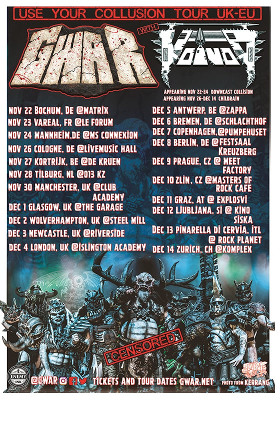 GWAR “Use Your Collusion” Europe & UK 2019 Tour: