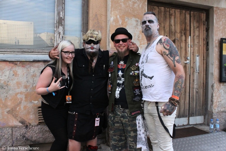 Turmion Kätilöt is a band that is huge in their own country Finland but maybe a bit less known in the rest of the world. Being a big fan myself, we tried to set up a meeting for an interview during Tuska 2016 to put them a bit more in the spotlight in the rest of the world too. On the day itself we caught up with them after their signing session and had a bit of a struggle to get backstage for the interview. Luckily Heta Hyttinen was in the neighborhood to help us out for that, thanks! Once we got there we met up with Spellgoth (vocals) and Bobby Undertaker (guitars, backing vocals). Next problem to solve: where to have the interview… we looked around a bit and decided to just take up post in one of the worn-out buildings or in Spellgoth‘s words: “Lets do it the hobo way!”. So with the nice background music by Obscura, that was playing on the main stage, we kicked off our conversation…