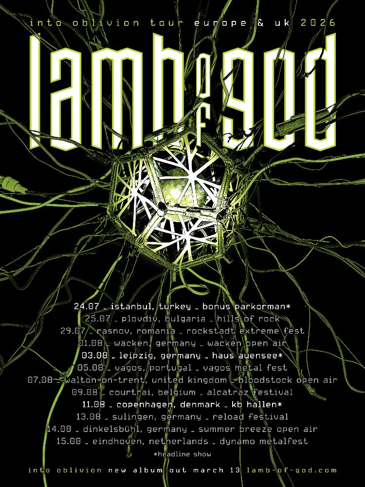 Lamb of God previously announced a Spring North American tour in what promises to be the heaviest trek of 2026. Joined by Kublai Khan TX, Fit For An Autopsy, and Sanguisugabogg, the tour kicks off on March 17. Tickets and VIP packages are on-sale now via Lamb-of-god.com/tour.