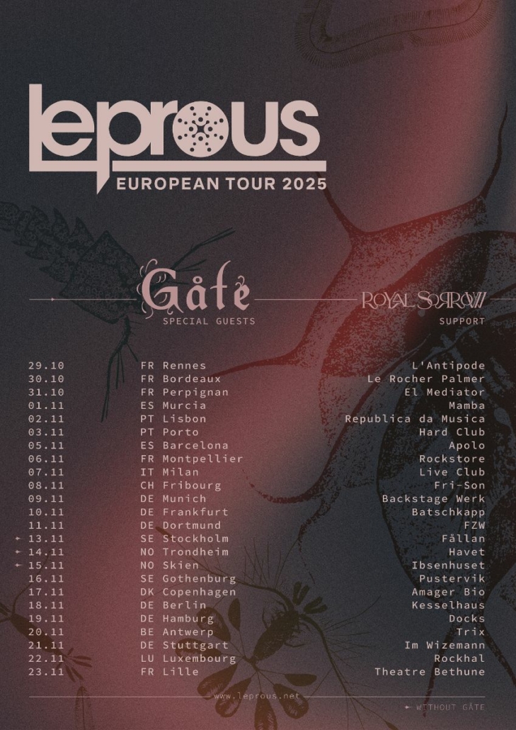 Having just recently performed at several high-profile European festivals across the Summer, LEPROUS will next embark on comprehensive headlining tour across Europe next month with supports Gåte & Royal Sorrow. Don’t miss the following upcoming live-dates by LEPROUS and get your tickets now.