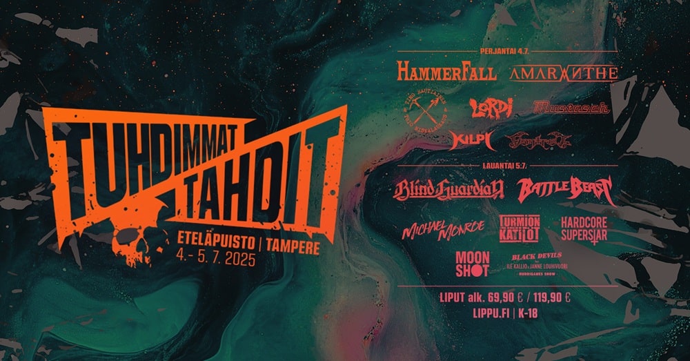 With Tuhdimmat Tahdit making its glorious return a couple of years ago, they’ve had some pretty editions behind them. Last year they boasted a fully Finnish line-up which seemed to have been appreciated by its visitors. This year they’re back at going international and bringing in some pretty epic bands from abroad with Hammerfall, Amaranthe, Blind Guardian and Hardcore Superstar! But of course they still have a very accomplished Finnish line-up to add to that with the Timo Rautiainen & Trio Niskalaukaus “Itku Pitkasta Ilosta 25 Vuotta” anniversary show, Lordi, Mustasch, Kilpi, Finntroll, Battle Beast, Michael Monroe, Turmion Kätilöt, Moon Shot and Black Devils! And of course, with its location in Eteläpuisto park right at the water, not too far from Tampere’s city center, it’s going to be such a fun place to be at this summer!