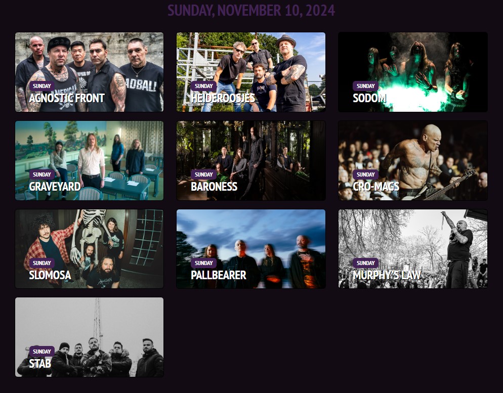 Last year, German thrash metal icons Sodom played one of the most impressive shows of the weekend on the Swamp Stage and are back to wreck us all again. And lastly, adding somewhat more elegance to the day, balancing out the hardcore/punk/thrash pummeling, a serving of psychedelic rock, sludge, stoner rock and similar will be brought to you by Graveyard, Baroness, Slomosa and Pallbearer… What an exhilarating combination of styles and bands!