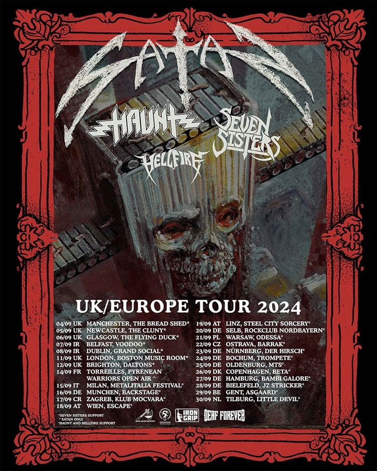 SATAN‘s history is storied, their albums and incendiary live shows, iconic. The Newcastle, England-bred lineup may quip that their career has been “forty-four years of prolonged mayhem with a twenty-year lunch break” – forming in 1980, eventually pausing before reuniting in 2011 – but circa 2024 finds the band thriving, writing, recording, and touring at the top of their game.
