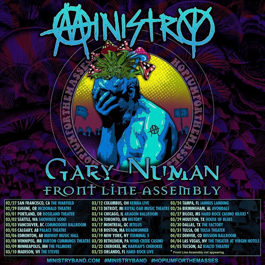 MINISTRY will play the new songs live on a Spring 2024 North American tour, kicking off February 27, supported by Gary Numan and Front Line Assembly.